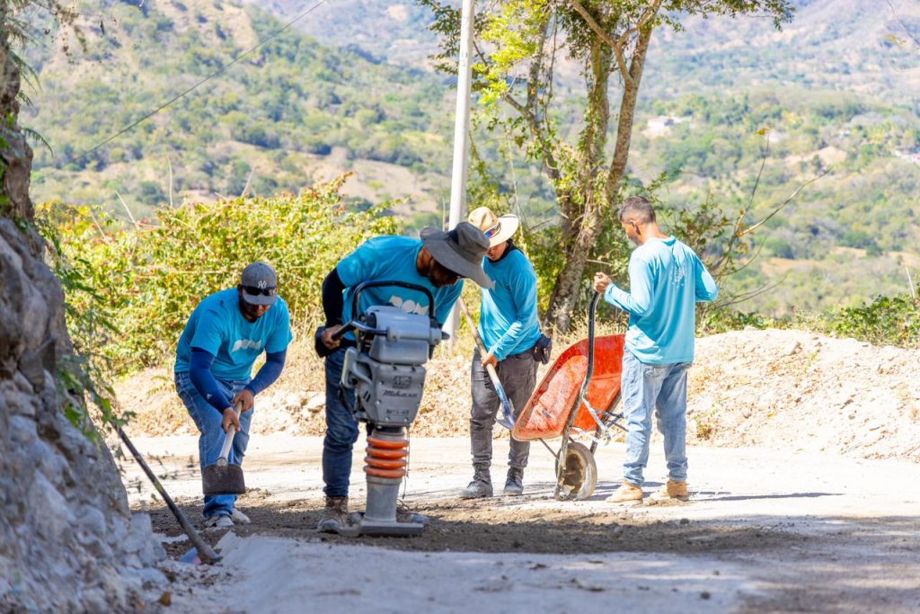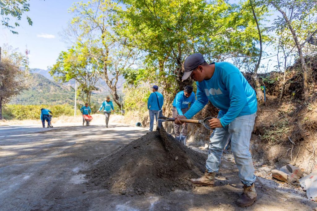 De manera complementaria, se ejecutan obras como cordones, canaletas, cajas hidráulicas de salida, derramaderos, badenes, dos muros de retención y sistemas de drenaje en el casco urbano de Arcatao. La cuadrilla trabajaba en la preparación de un tramo con base suelo-cemento para posteriormente colocar la capa de mezcla asfáltica.