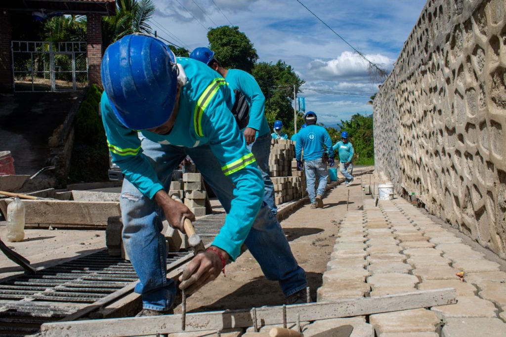 La obra también avanza con la construcción de dos muros de retención: uno principal de 37 metros de largo y de 2.70 y 3.80 metros de altura, que conecta con la calle principal; y otro interno de 14 metros de longitud y de 2 y 2.50 metros de altura.