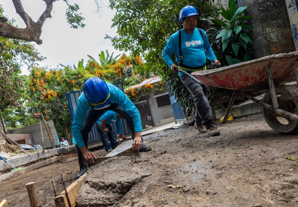 En un terreno de más de 10,000 metros cuadrados, el equipo de la Dirección de Obras Municipales ejecuta trabajos de desmontaje y demolición, seguidos de repellos y afinados de paredes, adoquinado en áreas de caminamiento, creación de espacios verdes y zonas de juego.