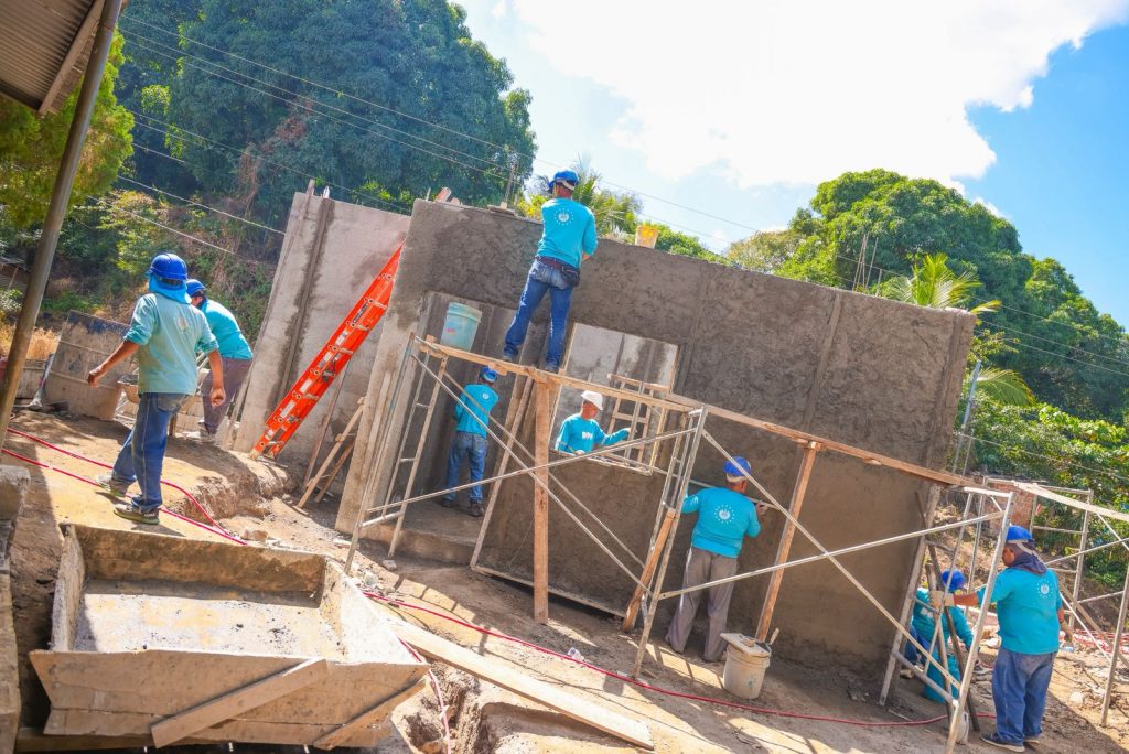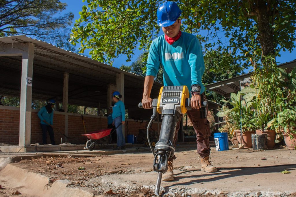 Las obras del moderno polideportivo que se ejecutan en un área de 2,060 metros cuadrados no se detienen en el cantón San Benito en el distrito de San Antonio de La Cruz en Chalatenango Sur.