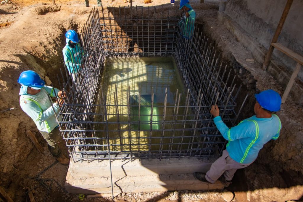 Este miércoles 26 de noviembre se realizaron actividades de repello, instalación de canaletas de aguas lluvias, desalojo de materiales y armaduría de las paredes de la cisterna.