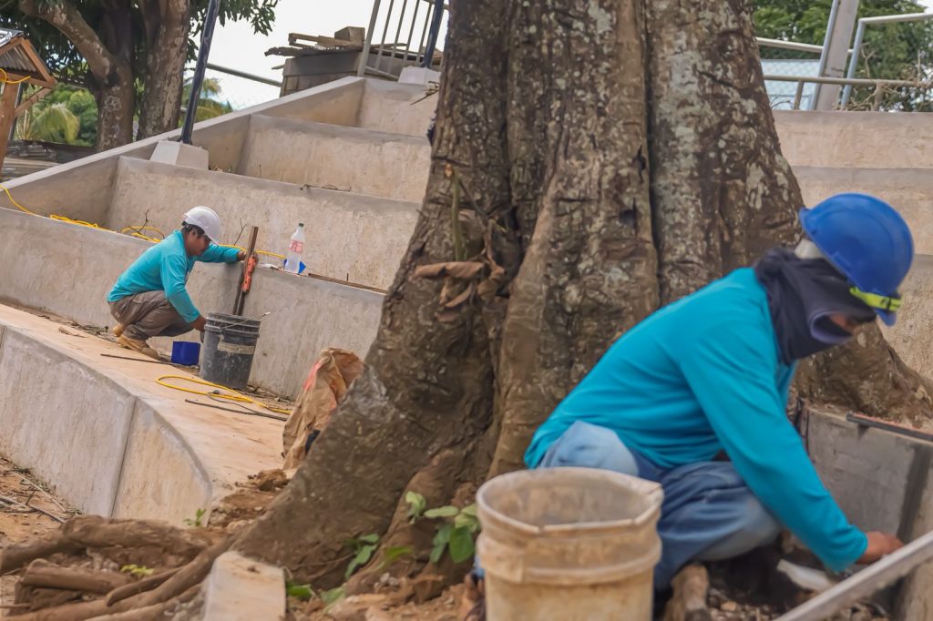 El proyecto, ubicado en la colonia Santa Anita, se ejecuta en un área de más de 2,560 metros cuadrados y con trabajos a la fecha de conformación de taludes, repello de muros perimetrales y drenajes, entre otros,