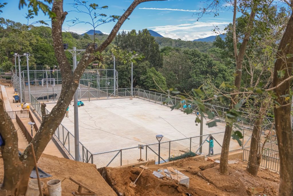 Además, se construye una cancha de fútbol y una cancha multiusos que contará con sus graderíos e iluminación.