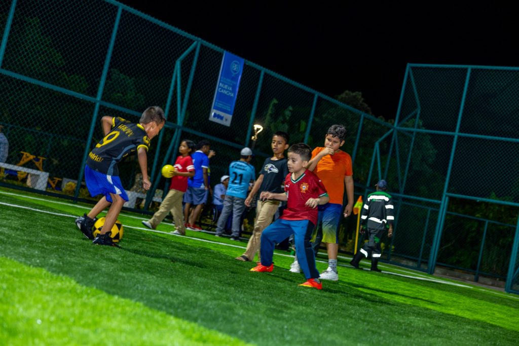 La obra que beneficia a más de 12.000 personas, consiste en la construcción de una cancha de fútbol con grama sintética, iluminación, graderíos metálicos techados y cerramiento perimetral. Tiene además un área de juegos infantiles con columpios y un sube y baja.