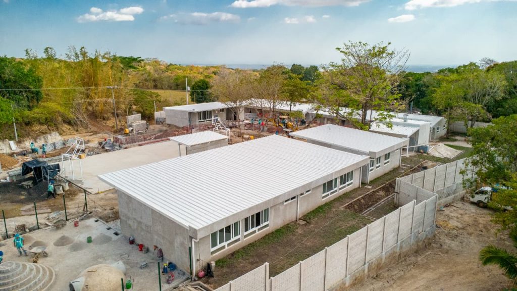 Los trabajos, que están en ejecución, comprenden la construcción de 5 módulos, que incluyen 9 aulas para más de 240 alumnos desde parvularia a 9no grado. Este centro escolar tendrá además nuevas áreas administrativas, áreas lúdicas para parvularia y espacios para cocina, comedor e Internet gratis.