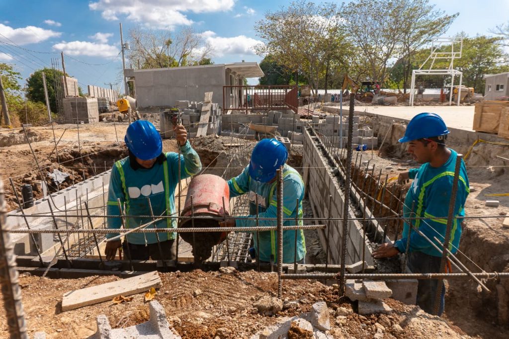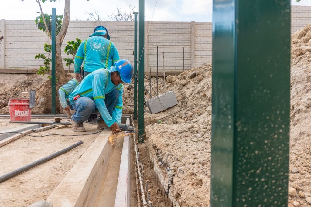 Este jueves se realizaron actividades de limpieza general, desalojo de materiales, colado de soleras de rampa a cancha y armado de soleras de fundación del muro perimetral. Otras obras fueron la conformación de taludes, instalación de cajas de aguas negras y la colocación de bloques con pegamento.