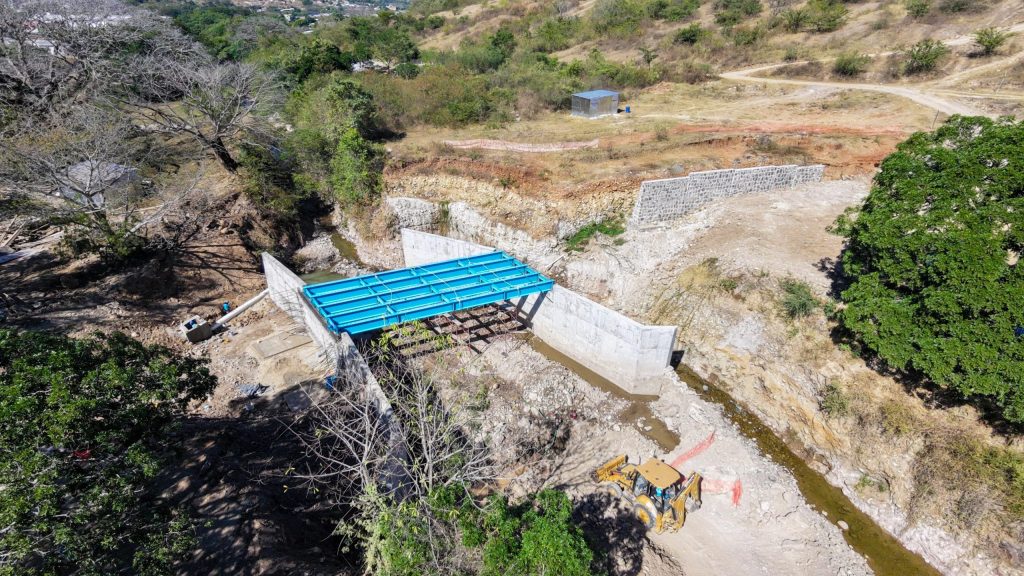 Más de 25.000 personas serán beneficiadas con esta estructura, sobre el río San José, que tendrá 17.30 metros de longitud, un ancho de 7.70 metros y una altura de 6.52 metros. En la zona baja del puente, las cuadrillas realizaron este miércoles trabajos de fraguado, armadurías en los estribos, terracería y avanzaron en la construcción de cajas de aguas lluvias.