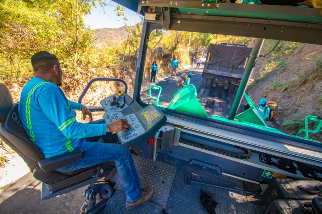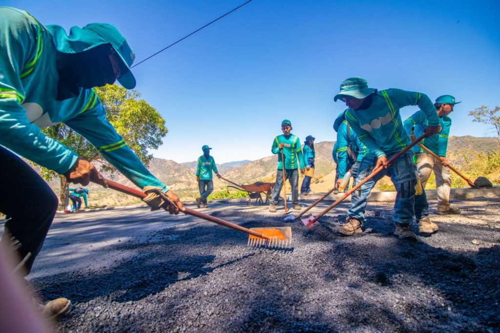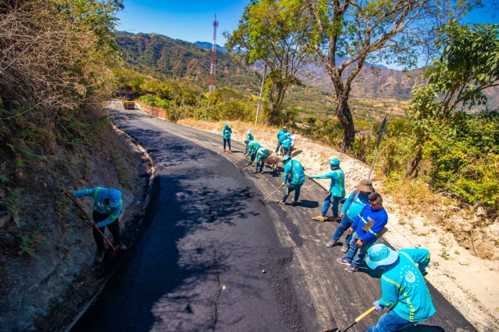 Las cuadrillas de la DOM colocaron este jueves pavimento asfáltico en 200 metros lineales, como parte de un proyecto de más de 5 kilómetros de mejoramiento de la calle rural entre Arcatao y cantón Teosinte, en Nueva Trinidad, municipio de Chalatenango.