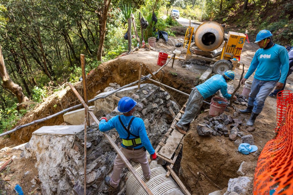 Esta obra está dividida en dos etapas: 7.2 kilómetros con mezcla asfáltica y 2.4 de concreto hidráulico. Actualmente se trabaja en la construcción de cajas colectoras de aguas lluvias, con sus cabezales de descarga e introducción de tubería de 36 pulgadas de diámetro.