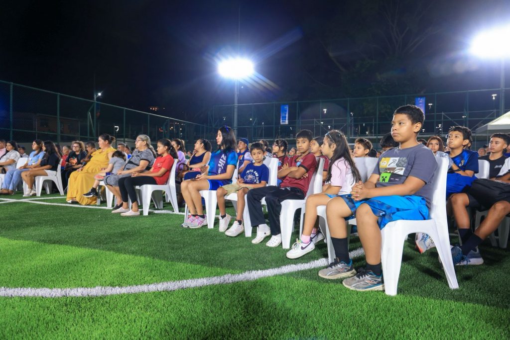 También una cancha con grama sintética de 42 metros de largo y un ancho de 23 metros, con servicios sanitarios, incluido para personas discapacitadas. Además, cuenta con duchas y lavamanos, entre otros.