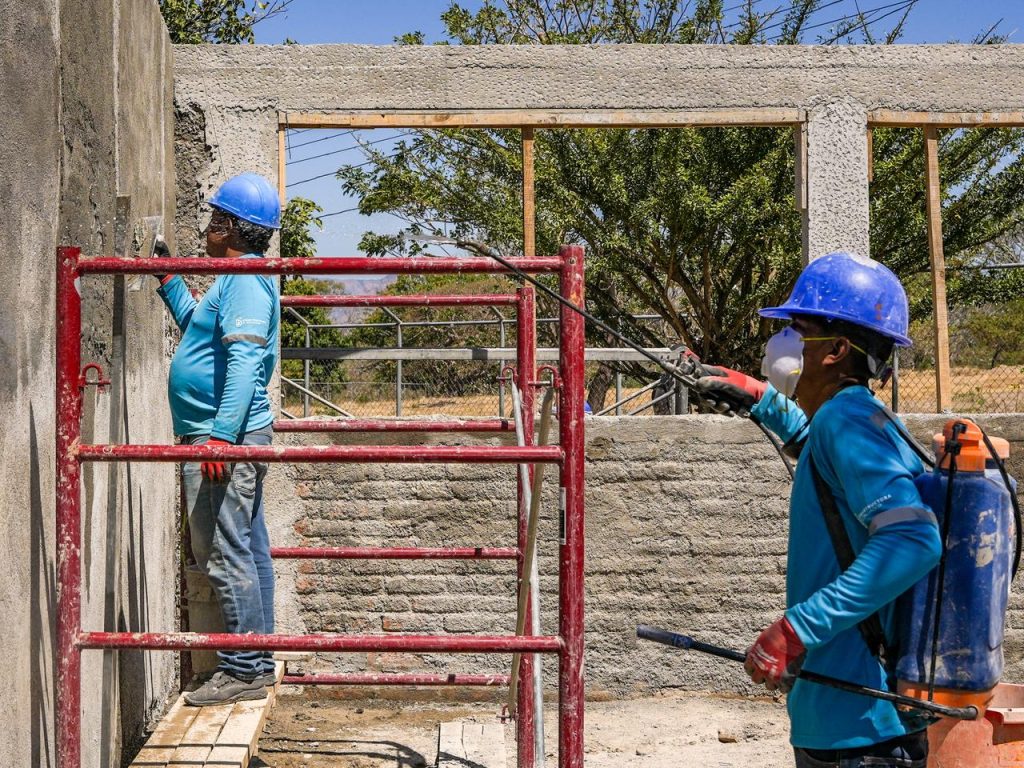 En el módulos -A- se refuerzan estructura, columnas, vigas y zapatas, así como repello de paredes, trabajos previos para colocación de placas metálicas.