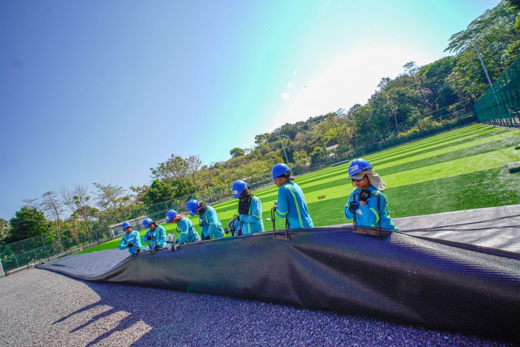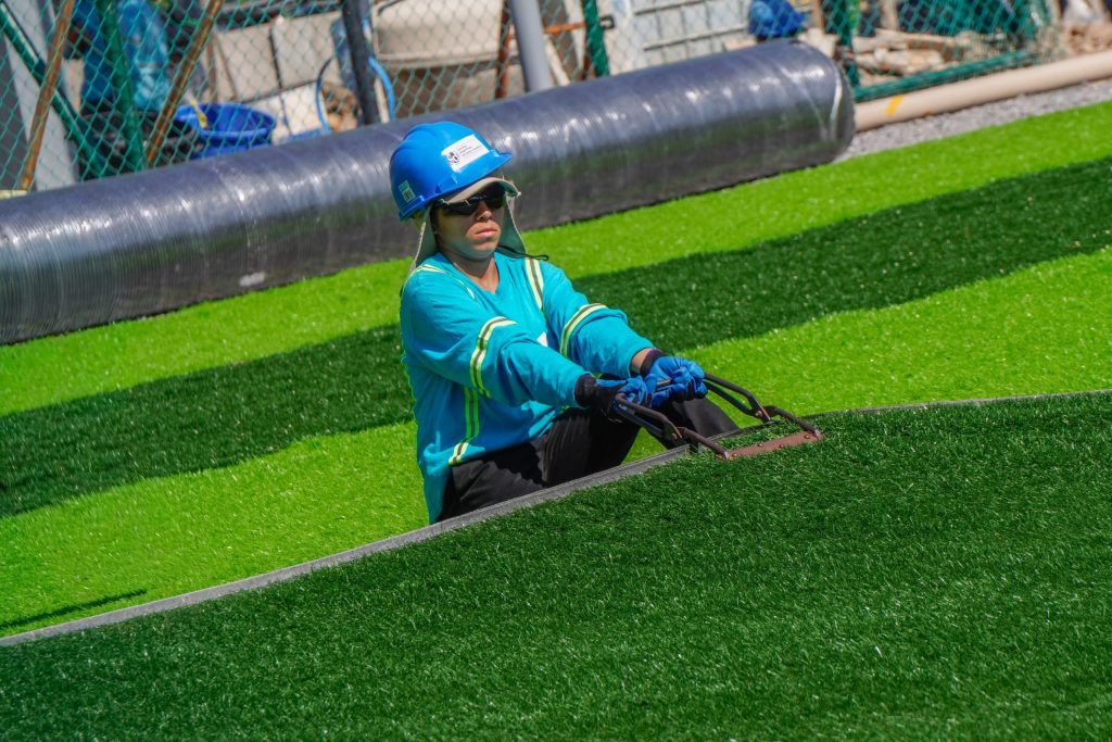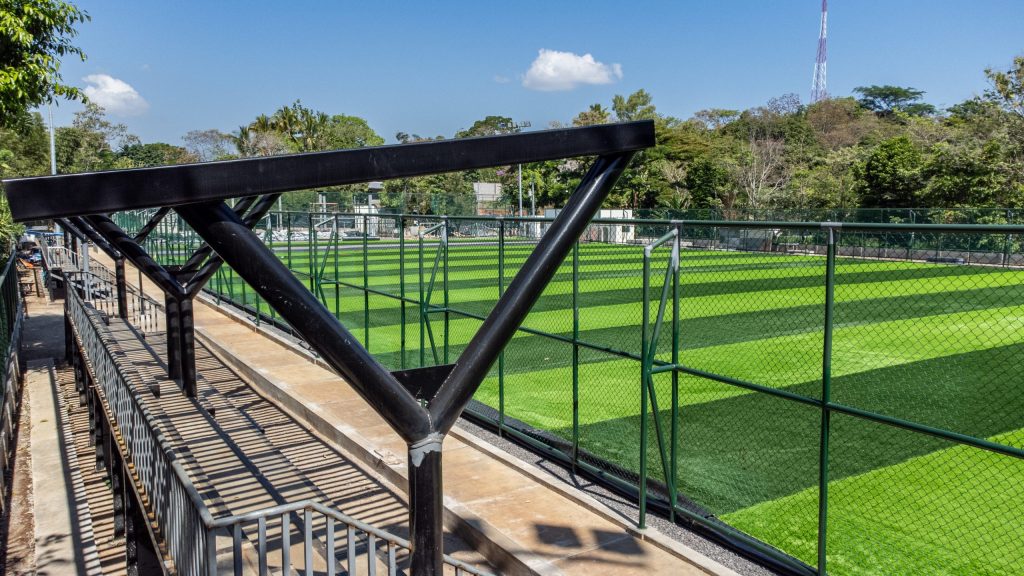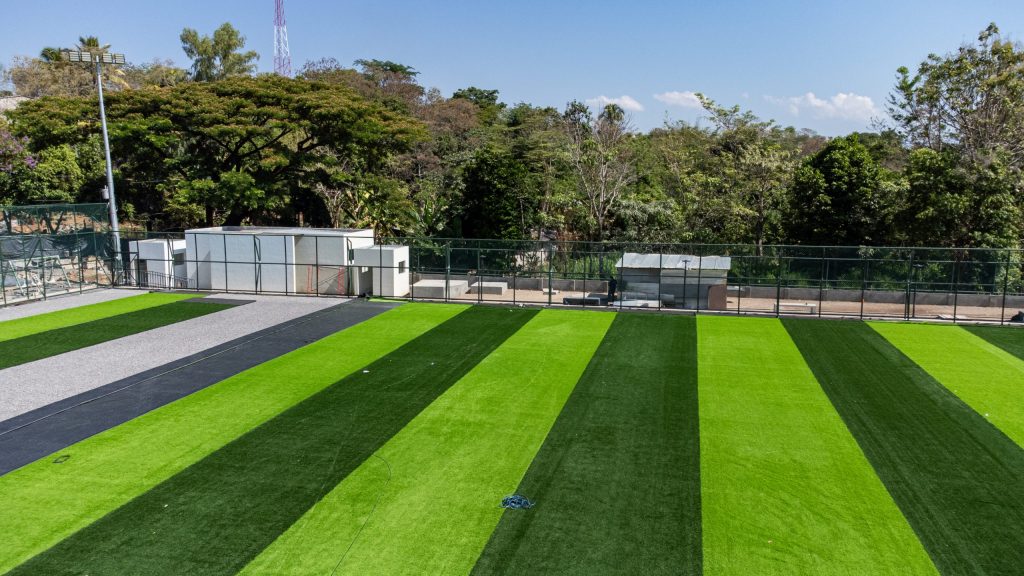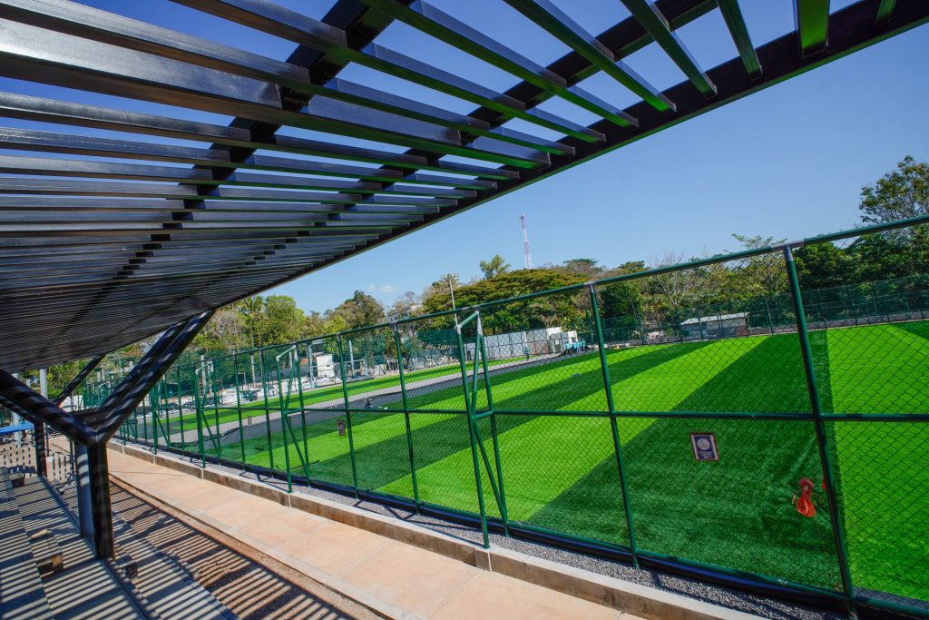 Mientras tanto, trabajan en la construcción de estructura techo de cancha multifuncional, siembra de grama sintética en cancha de fútbol 11 y graderíos metálicos.