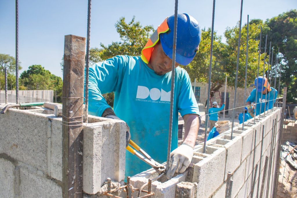 Hasta la fecha, se ha levantado la estructura principal de la cocina comedor, el aula de parvularia, una batería sanitaria y parte del muro tapial perimetral prefabricado.
