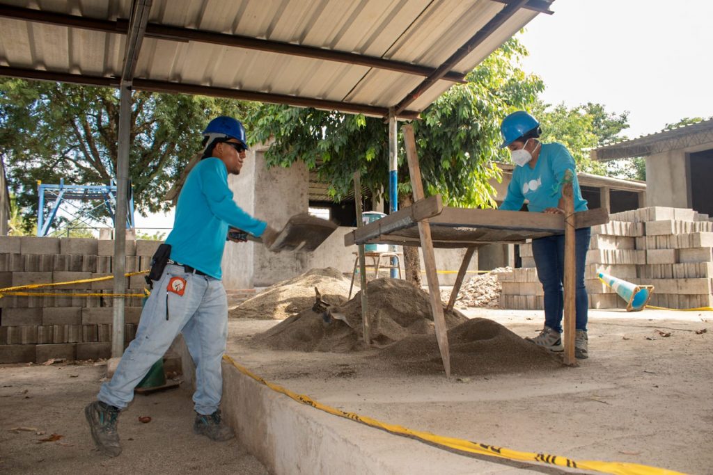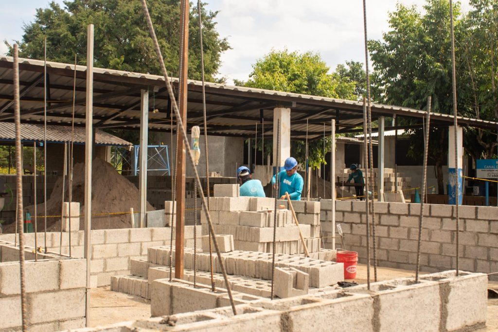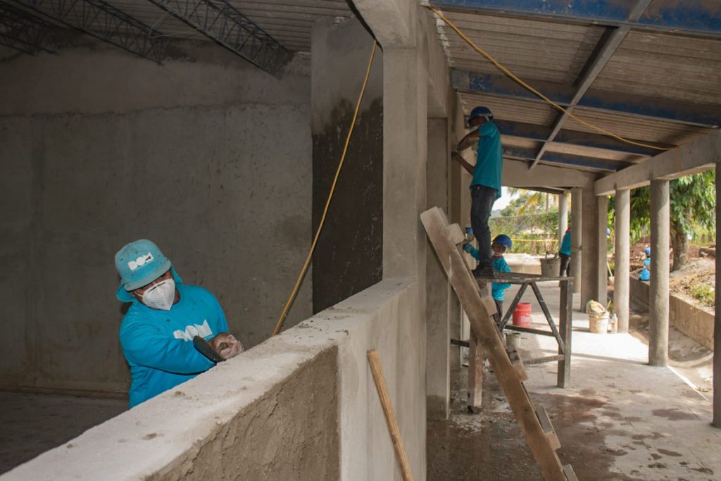Como parte del progreso que ejecuta un equipo de trabajo de más de 36 personas, en su mayoría de la zona, se han realizado repellos y afinados de paredes en los módulos 1, 2 y 4; mientras en el módulo 5 de parvularia, que se reconstruye desde cero, ya se colocaron cimientos y hay levantamiento de paredes.