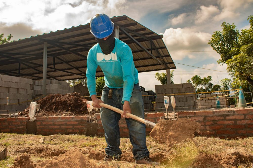 Las obras no se detienen, en cantón San Rafael, distrito de Tacuba, en el municipio de Ahuachapán Centro, las cuadrillas de la Dirección de Obras Municipales, avanzan en los trabajos de remodelación del Centro Escolar de esa zona para beneficiar a más de 500 estudiantes de parvularia a noveno grado.