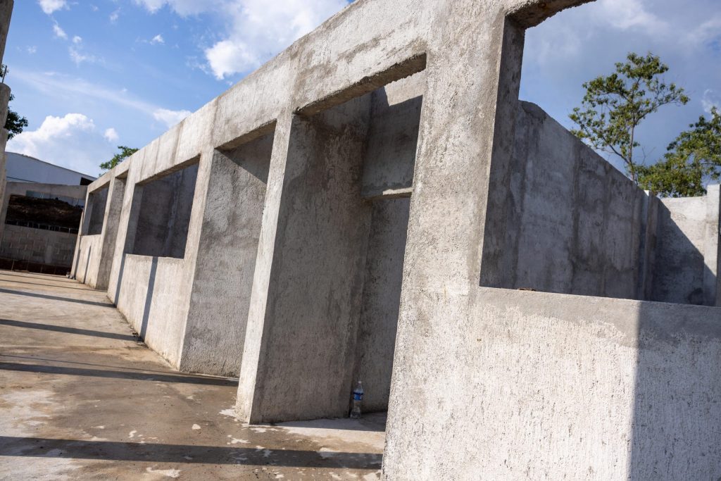 Este miércoles 3 de diciembre se avanzó en los trabajos de repellos, en la construcción del muro perimetral, las rampas de acceso, el área de los baños y desalojo de escombros, entre otros.