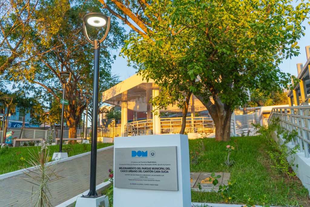 El renovado parque de Cara Sucia es la tercera obra concluida por la DOM en el distrito de San Francisco Menéndez. Las primeras dos fueron proyectos viales que renovaron más de 200 cuadras de calles en el casco urbano.