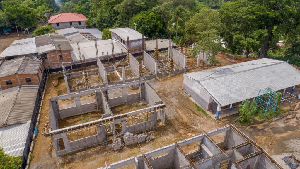Este martes 18 de noviembre se realizaron obras de repellos, instalación de las estructuras de techos y trabajos de excavaciones para muro perimetral de la fachada.