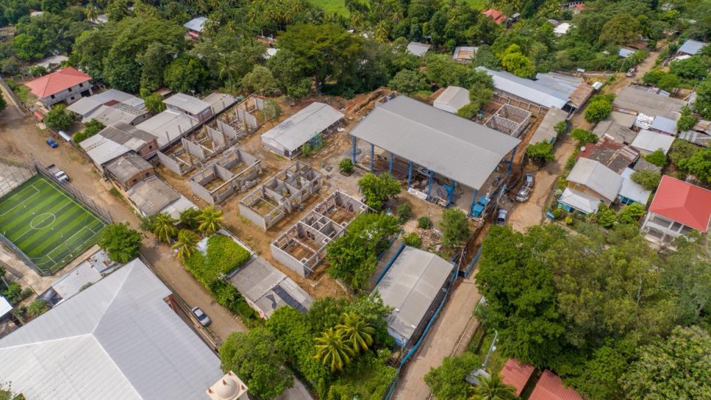 Se construye también módulos para albergar la dirección, enfermería, cocina, comedor, una cancha multidisciplinaria, un escenario, un huerto, sistemas de agua potable y de drenaje.