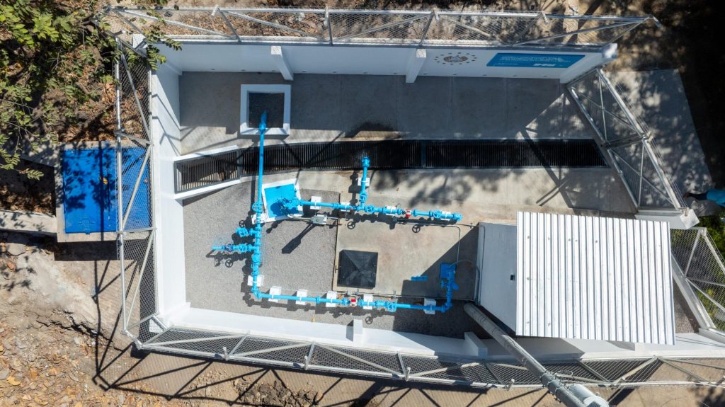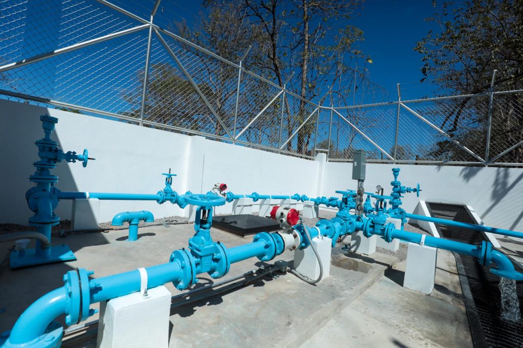 También se instalaron 2 válvulas reguladoras de presión, 19 válvulas de control, 5 válvulas de lodos o de limpieza y 3 válvulas de aire. El equipamiento del tanque, la caseta de bombeo y la cisterna incluye además un cerramiento perimetral con malla ciclón e instalación eléctrica.