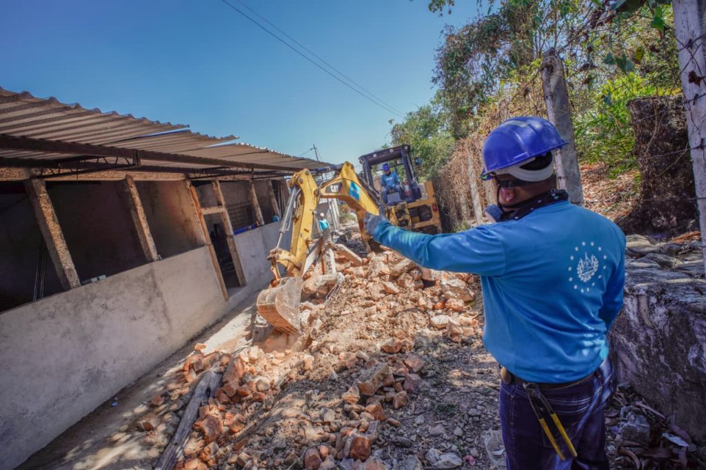 Posteriormente, se iniciará la construcción del nuevo muro perimetral.El proyecto tiene un 11% de avance. El centro consta de dos módulos, uno ya existente, en el que solo se ha demolido una de las aulas, en el restante, se eliminado el repello de algunas paredes, para aplicar uno nuevo, mientras el segundo edificio se demolió para construirlo de nuevo: ahí se ubicará la dirección, la cocina, un aula y los baños sanitarios.