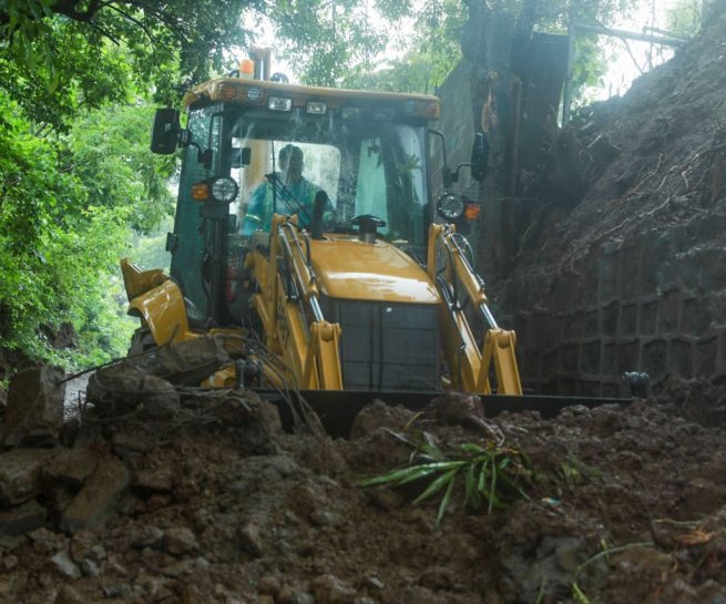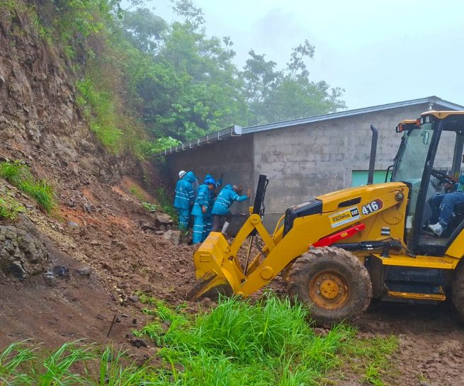Cuadrilla de la DOM evacúa a familia que corría el riesgo de ser soterrada por alud de tierra y piedras en Chalatenango