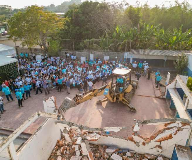 DOM, a través de programa de Primera Dama, Gabriela de Bukele, inicia reconstrucción de nuevo centro educativo de Santa Ana