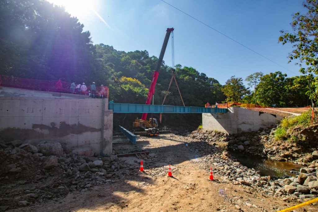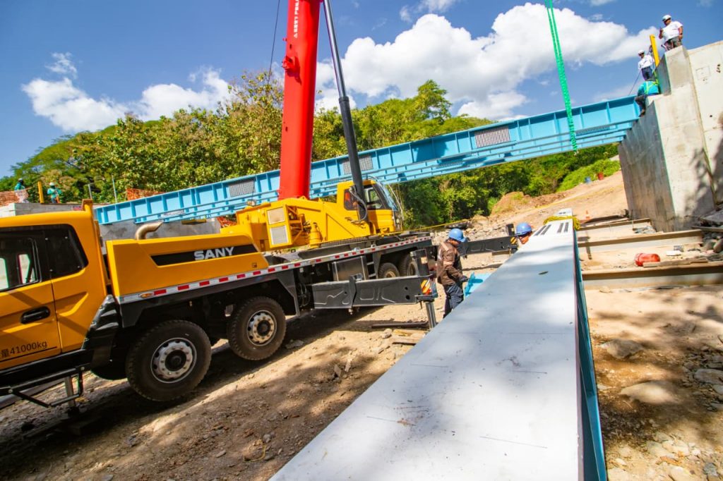 Este martes 25 de noviembre concluyó la instalación de 5 vigas de 21 toneladas cada una por lo cual fue necesaria la utilización de una grúa y se construyen taludes, barreras de protección a ambos lados de la calle.